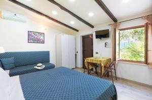 Studio apartment with garden view, for 02 people, with independent air conditioning and free WI-FI, consisting of a double bed, private bathroom with shower, fully equipped kitchenette with dishes, pots and utensils, direct access to the large private garden with gazebo for exclusive use furnished with sofas, table and armchairs. Dedicated relaxation area with deck chairs, umbrella and hammock. Both bed linen and towels are included.